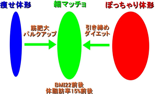 細マッチョ体型へのアプローチには2通りあり、一つは痩せ体型からのアプローチ、もう一つはぽっちゃり体型からのアプローチです。