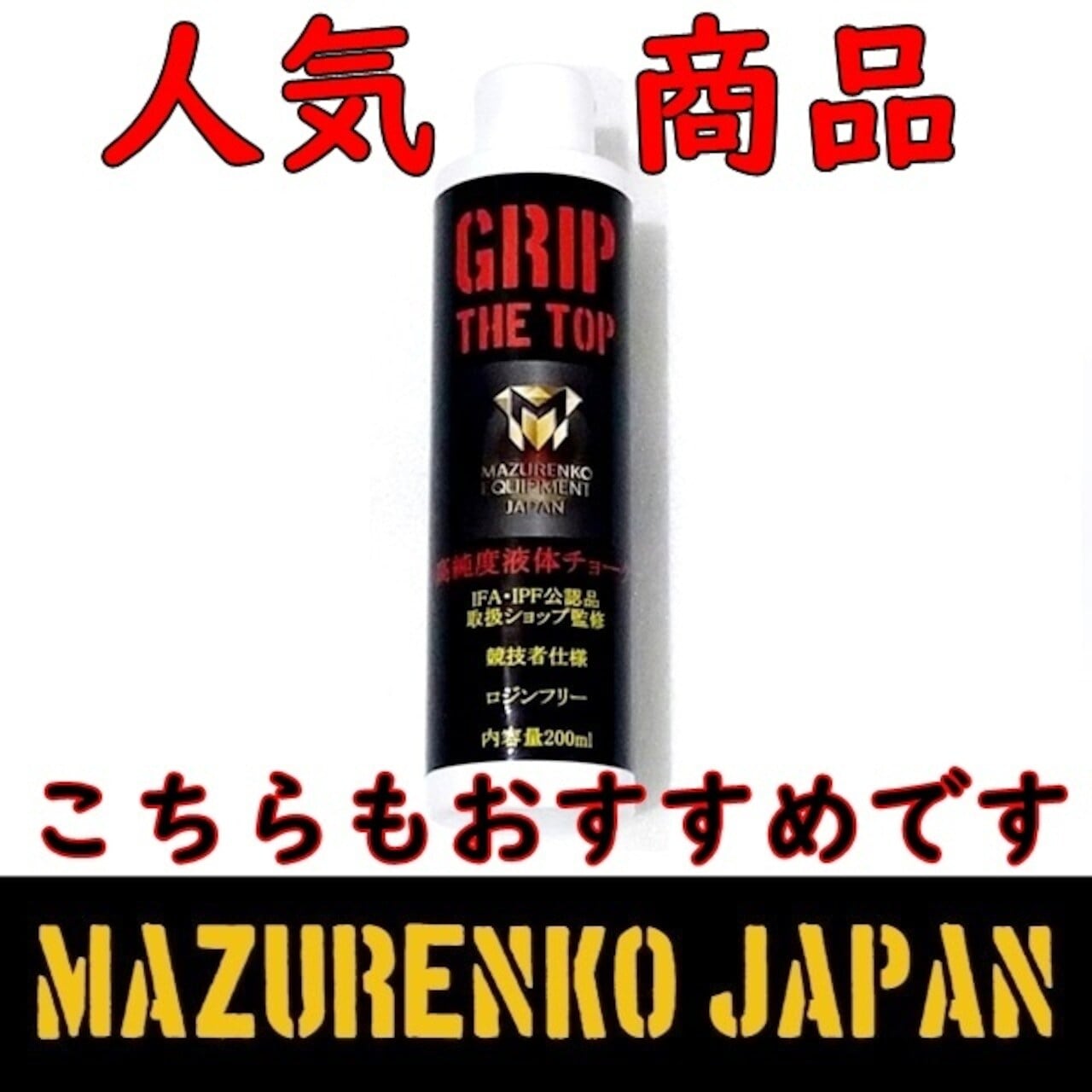 IFA公認正規ショップである当ショップが、日本代表選手の監修でオリジナル開発した液体チョーク「Grip The Top」もおすすめです。高濃度高純度液体チョークのグリップ力は、紙一重で勝敗が決まる競技大会での使用に最適です。アームレスリング・パワーリフティングなどの公式戦で使用可能です。